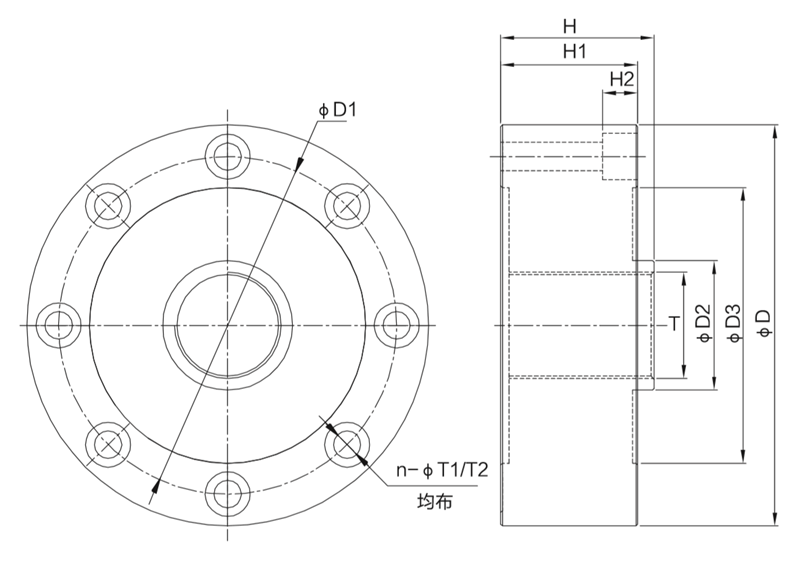 型號 | 量程(t) | D | D1 | D2 | D3 | H | H1 | T | T1 | T2 | H2 | n |