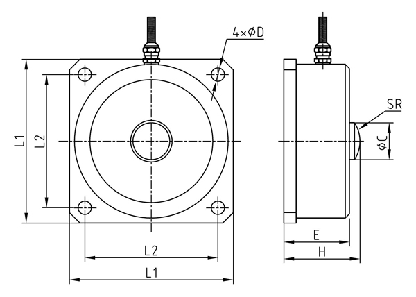 型號(hào) | 量程(kN) | 量程(t) | L1 | L2 | ΦC | ΦD | H | E | SR |