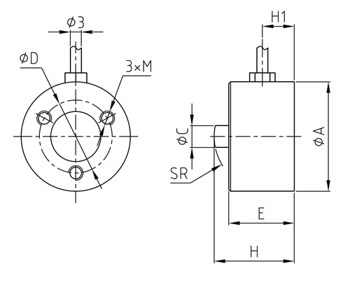 型號 | 量程(kN) | 量程(kg) | ΦA | ΦC | ΦD | H | E | M | H1 | SR |