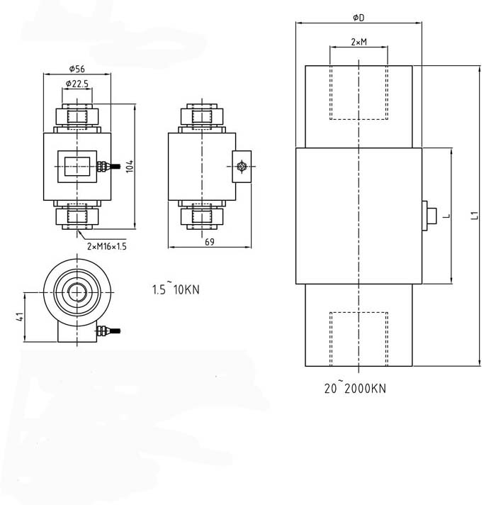 量程:1.5kN(150kg)、2kN(200kg)、3kN(300kg)、5kN(500kg)、10kN(1t)、20kN(2t)、30kN(3t)、60kN(6t)、100kN(10t)、150kN(15t)、200kN(20t)、300kN(30t)、500kN(50t)、600kN(60t)、1000kN(100t)、1500kN(150t)、2000kN(200t)